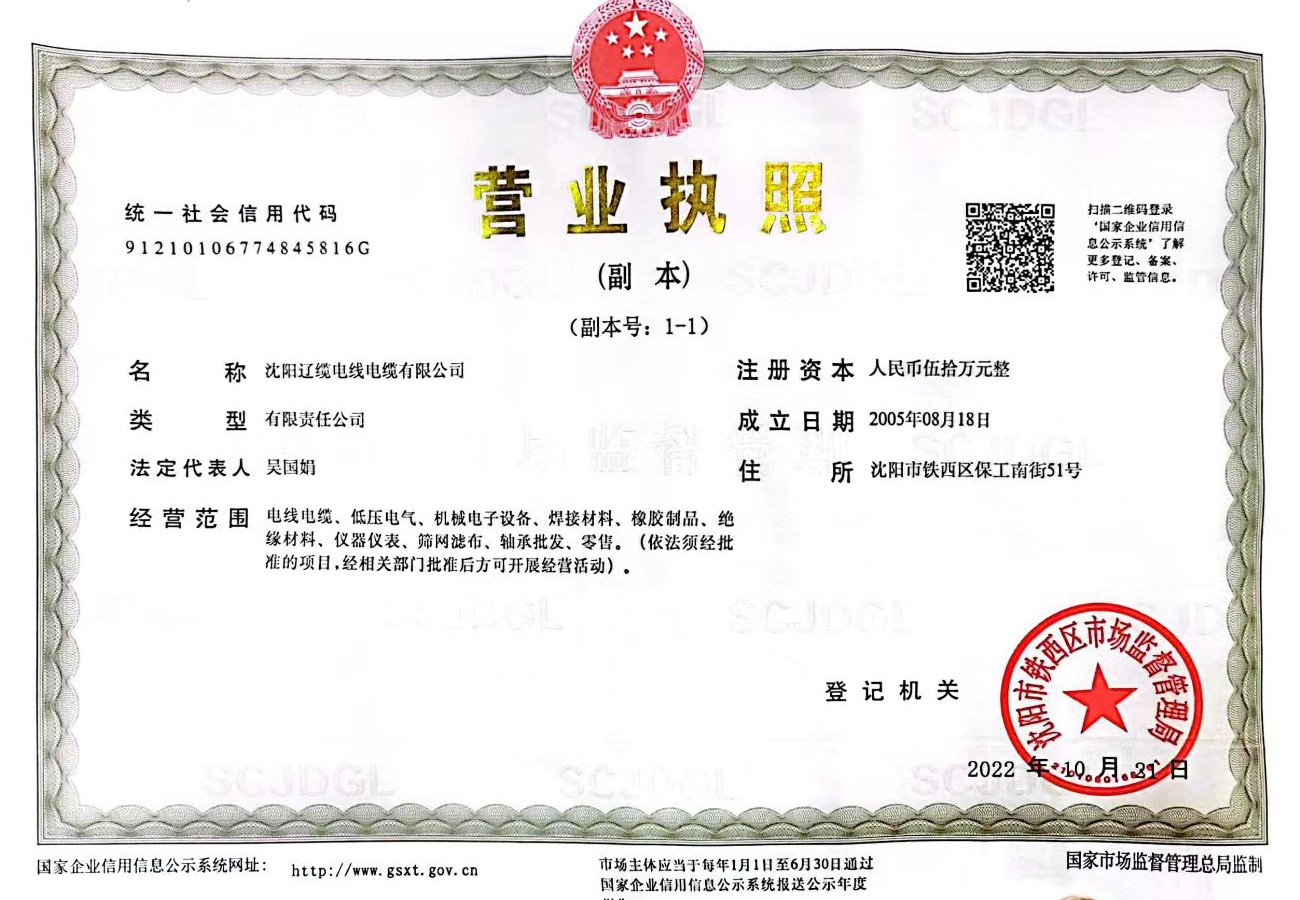 沈陽(yáng)遼纜電線(xiàn)電纜公司資質(zhì)