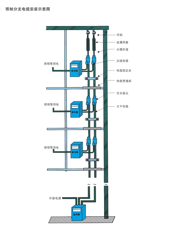預(yù)制分支電纜垂直安裝時,一般應(yīng)按以下要領(lǐng)進行敷設(shè):