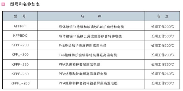 氟塑料絕緣和護(hù)套耐高溫特種電纜